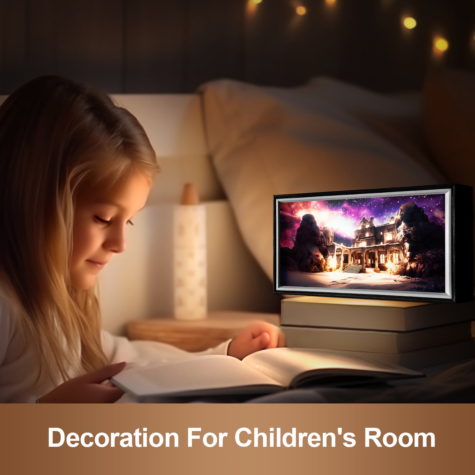 Introducing our unique 'Castle At Night' LED Light Painting Artwork, a piece that adds a touch of whimsy to your environment. In its unlit state, it showed castle in the snow, but when the lights come on, night was falling and the sky was shining with stars. This artwork brings a delightful surprise and charm to your room. Whether you're a landscape enthusiast or someone who appreciates imaginative art, this piece will bring joy to your space!